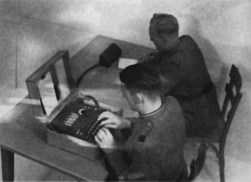 The message to be encrypted is entered by the typewriter keyboard and the letters of the encrypted message is copied from the lamp field and written on a telegram form, which is forwarded to the radio operator for transmission.